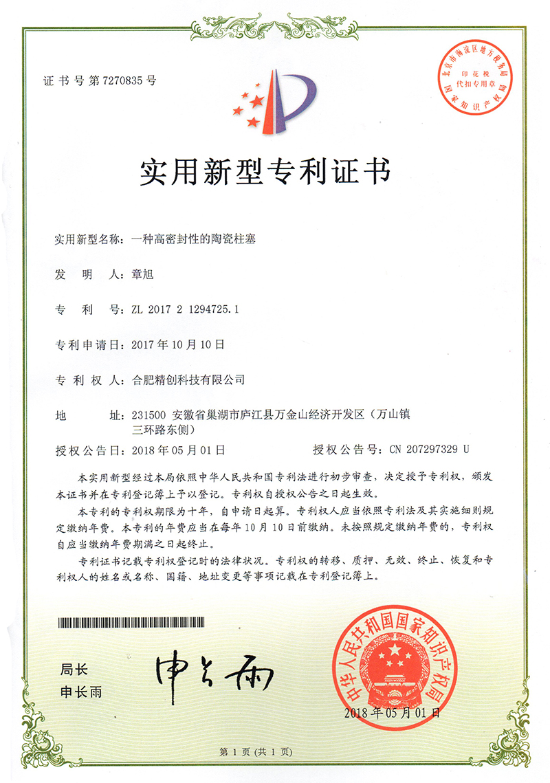 (2018實(shí)用新型)一種輕質(zhì)陶瓷柱塞